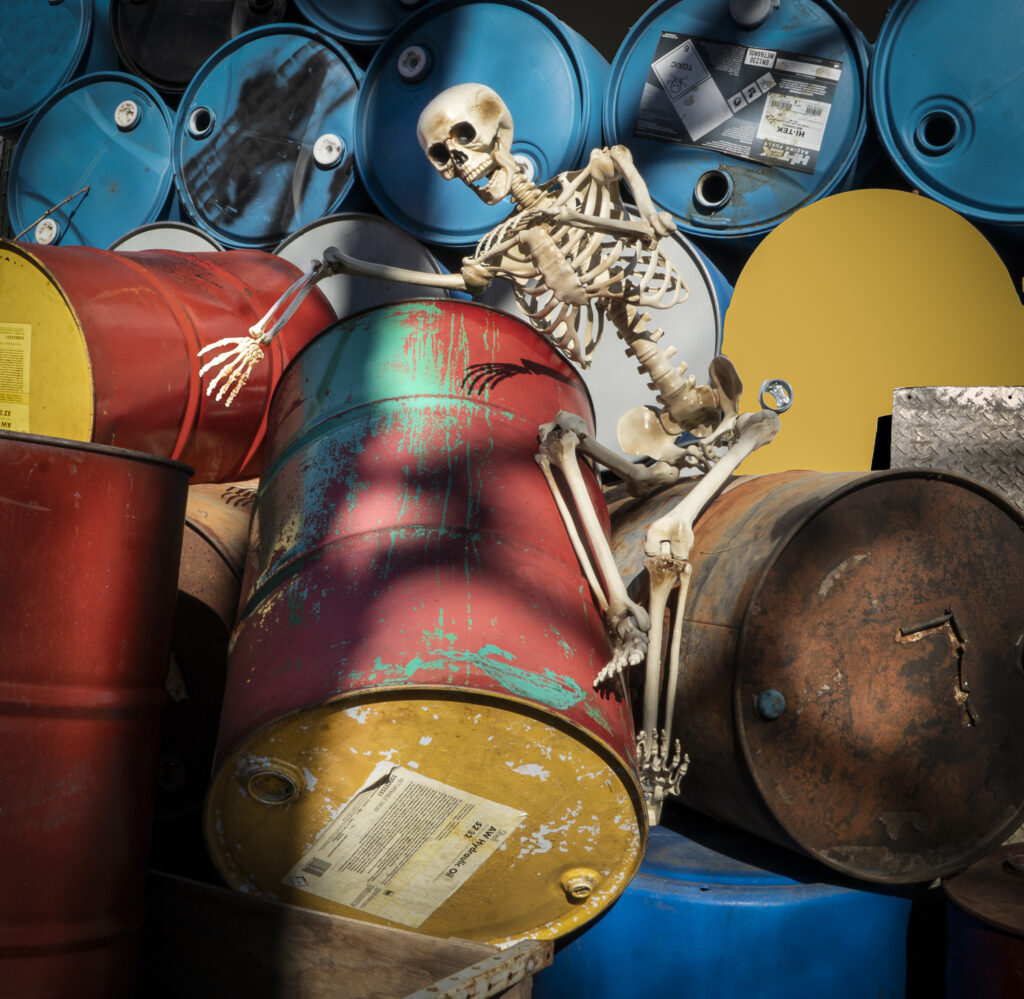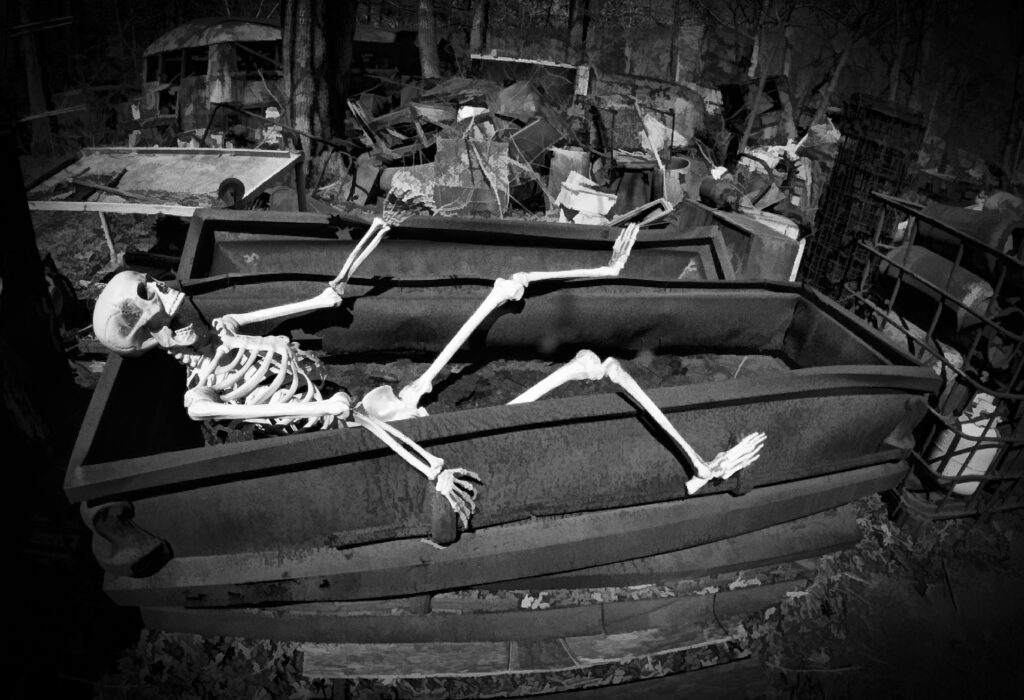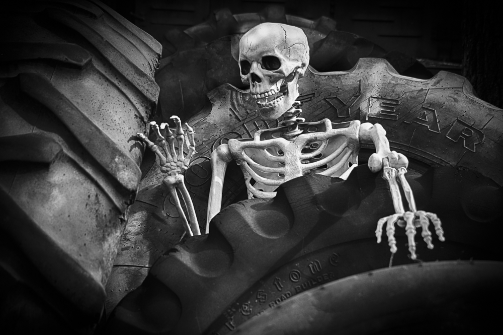 Okay, so now things are starting to get a bit crazy. When Jim told Betsy she had to get in a trash can, she said that was going over the line as our trash cans are too stinky. So he came up with the idea of getting a brand new, non-stinky trash can at Home Depot. When he set up the speedlight during a test shot, he was amazed by the really cool reflective pattern that emulated out from the can – an added bonus. Now, how to get Betsy in the can? Well, she didn’t fit in a normal crouching-down position, so she had to fold her legs up behind her, and Jim lowered her into the can. A pillow was placed in the bottom of the can to make the awkward pose a bit more comfortable. Betsy did her own hair and make-up for the shot. After he took the shot, Jim realized that he could not lift her back out of the can. The solution was to gently tip the can over, then drag it off behind her. Betsy was only slightly bruised, and the trash can survived without a dent and was returned to Home Depot intact.