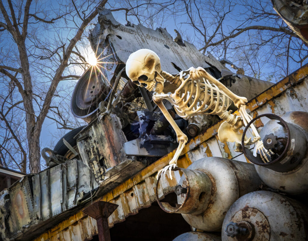Jim and Betsy took a ride out to Lancaster County to get this image of her patiently waiting while a train goes by. We knew we could find plenty of trains in Strasburg, but alas there was no good train crossing around to set up this shot. The image of Betsy in the car is in the parking lot of the Strasburg Railroad, and the train is the Strasburg train, but they were not actually there at the same time.This is Betsy’s selfie – the only picture of hers without Jim in it. We have a skylight in the center of our living room. Only during the first few days of summer, when the sun is directly above, do we see this amazing shaft of light pouring down into our living room. Betsy quickly put on a long dress, put the camera on a tripod and set the timer. She didn’t have much time, as when the sun moved, the shaft of light disappeared.
