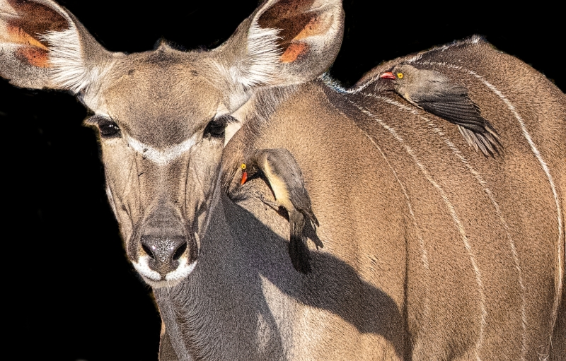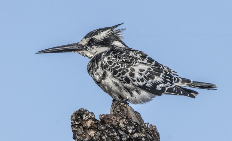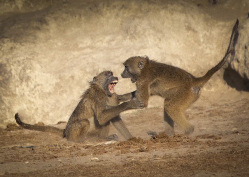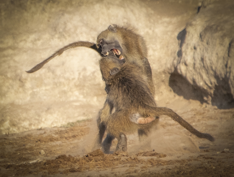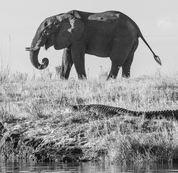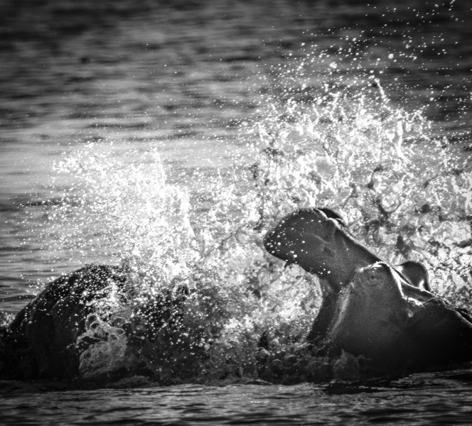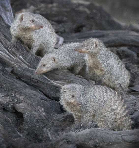 By land we drove by many giraffes, observed a pair of lions mating on the plains, enjoyed the playful antics of baboons, and photographed the graphic patterns of zebras. On the water, we were amazed by the huge hippos who were either just resting in water or on land, or sometimes either fighting or playing with each other. Our boat could get very close to shore, where we enjoyed watching a troop of banded mongooses scampering around a tree stump. We could get very close to a wide variety of colorful birds, and had fun trying to photograph kingfishers as they hovered over the water preparing to dive for food.